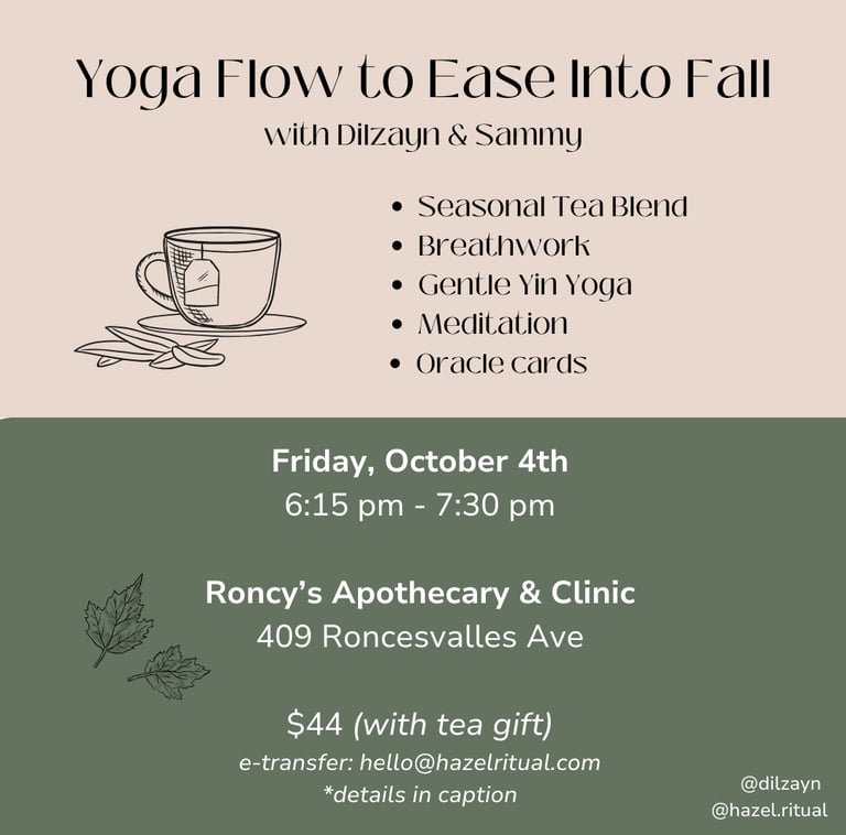 Join us on October 4th, for a cozy evening of connection and mindful rest 🍂✨ With the equinox behind us, the Fall season invites us to embrace slower rhythms and longer nights. Through the grounding practice of yin yoga, we’ll attune to nature’s quiet energy, encouraging us to rest and restore.
